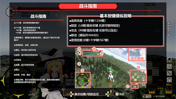 10、东方流星谭中忘记了键位都可以点击esc调出战斗指南
