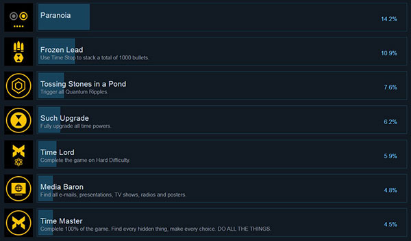 相信有很多小伙伴问问量子破碎有哪些成就?每个成就的达成方法是什么?很下面小编就为大家带来全成就一览一共有1000G的成就点数,一起来看看吧。
