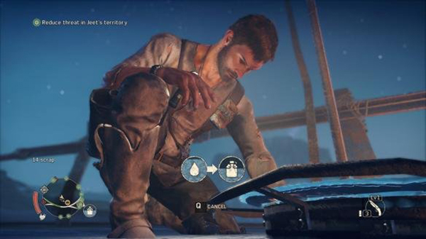 和很多开放世界游戏一样,MAD MAX中,你可以开着战车到地图各个角落去探索,收集资源的同时获得那一点点微乎其微的废料。举个例子,一个小据点差不多只有数十废料,但大多数升级需要上百,甚至几百……