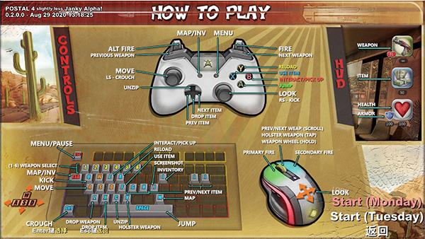 喋血街头4(POSTAL 4: No Regerts)是一款开放世界第一人称射击游戏,也是《喋血街头》系列游戏的正统续作。该游戏延续了前作的游戏风格,玩家将再次扮演暴力邮差,在前作城市被毁灭后,这位邮差在亚利桑那州沙漠里游荡寻找新家园。除此之外,放世界和沙盒玩法也给玩家提供了非常高的自由度,你可以在这个游戏世界为所欲为,其中玩家能搞以非线性的方式处理你的日常事务,寻找可以获得额外奖励的支线任务,或者忽略所有这些,在你闲暇的时候引起大混乱。
