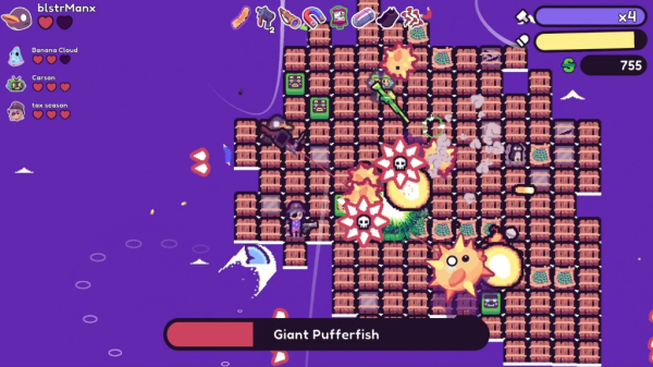 超级木筏船联机版,和最多3位好友联手征战多人联机,穿越各具特色的惊险海域,挑战充满变数的roguelike冒险。以下是联机教程: