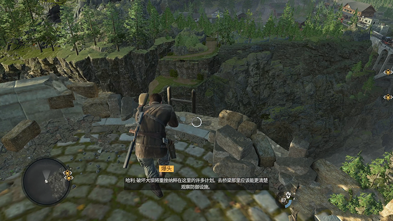 击杀他以后我们往右手边下方看,下方有【选项B-堵住大坝溢流管(0/2)】,用狙击枪打掉它们。