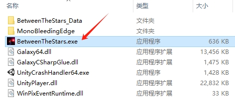 1、在本站下载压缩包,解压至英文路径下,双击“BetweenTheStars.exe”,打开游戏;