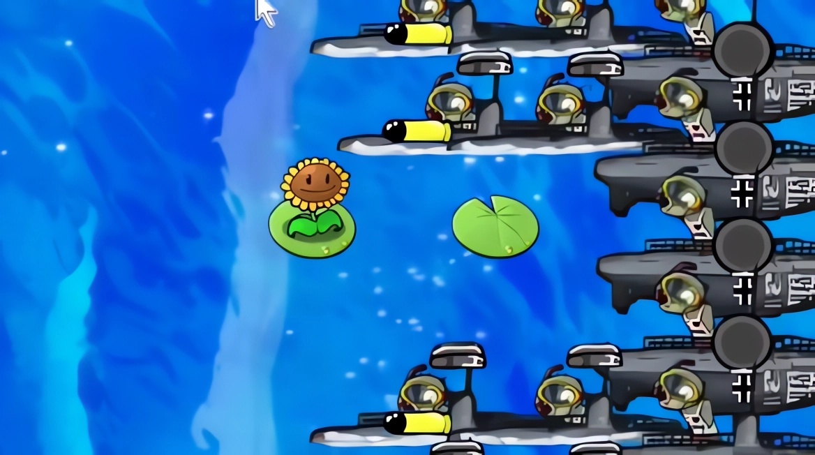 2、首批僵尸来的时候在正中间位置放一颗水雷。