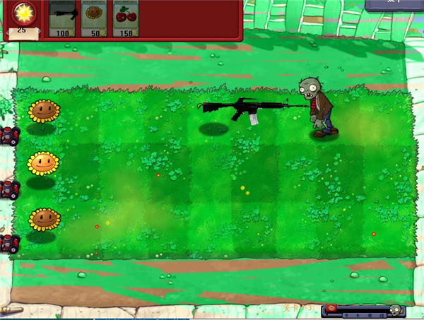 4、游戏里会有五条路线,玩家要按照路线进行植物的种植,起初有时间就要种植向日葵来获得阳光。