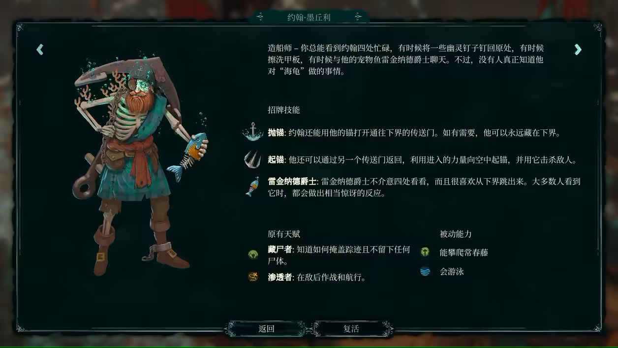 技能升级:拉进下界-解锁拉进下界技能。约翰可以将船员藏匿在下界,帮助船员躲避危险或准备伏击。