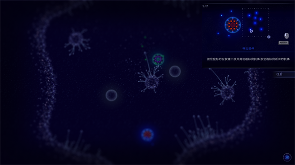 3、待了解完毕后,点击淡蓝色的细胞开始游戏。