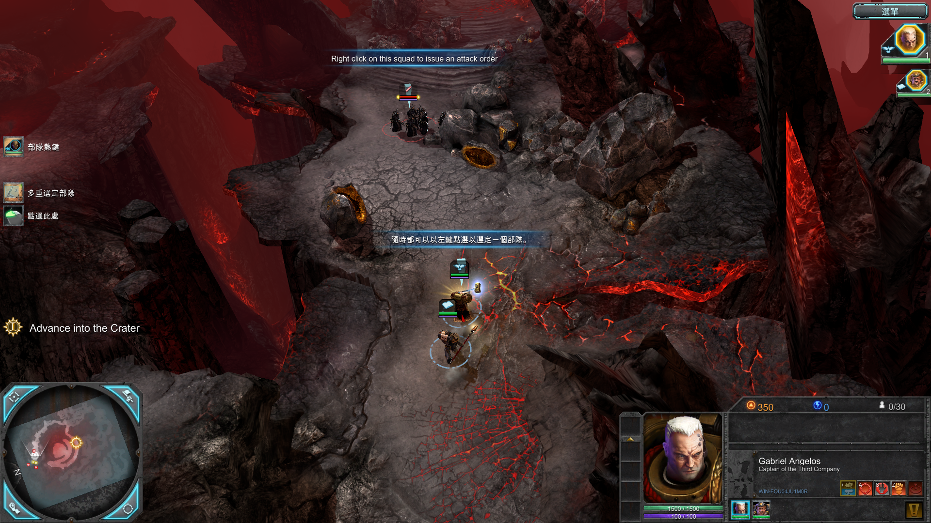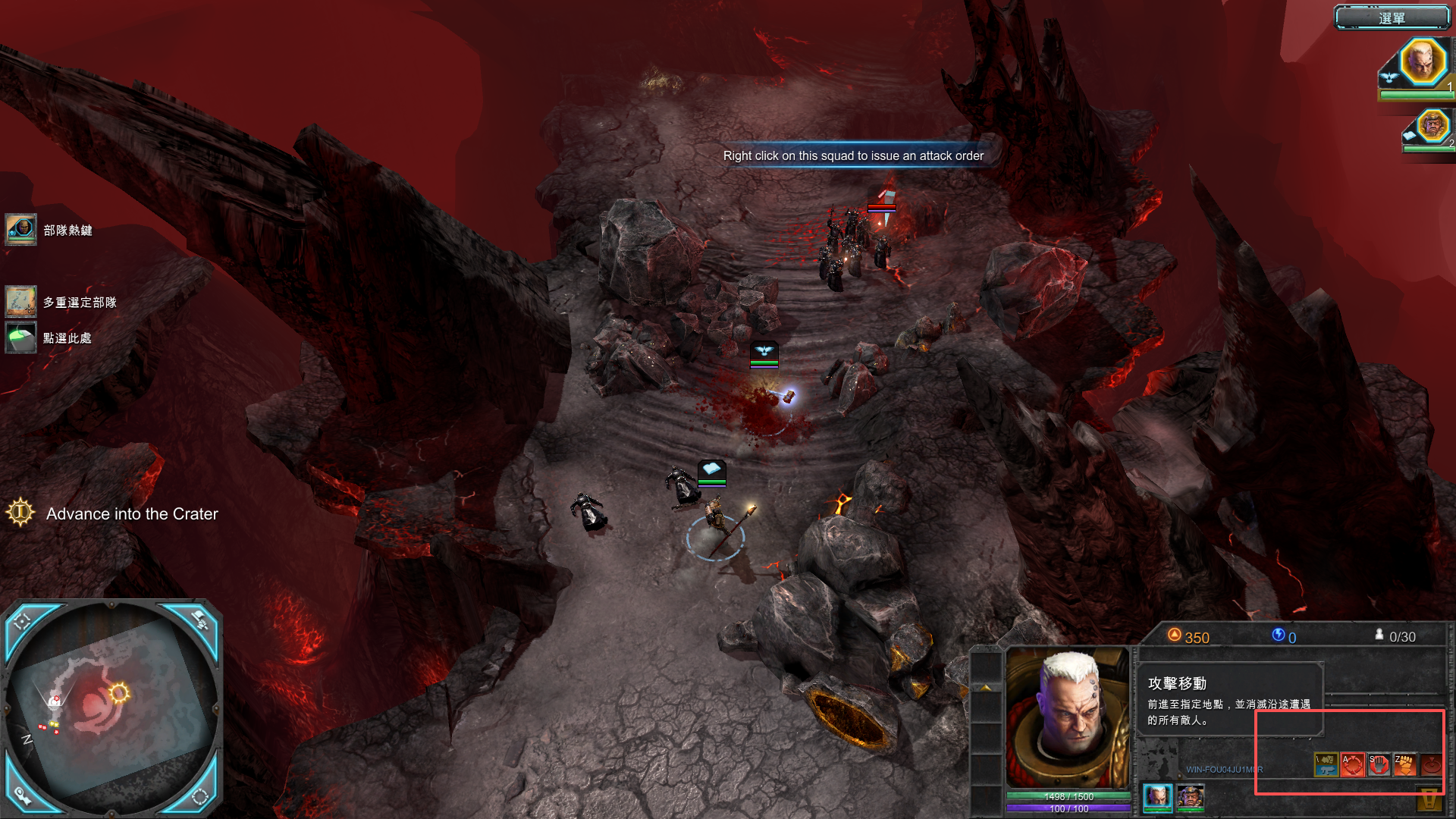 2、玩家可以通过鼠标左键拉框来范围选中角色,当然,也可以直接点击单个角色或者点击屏幕右上角的角色头像也是可以行的,此外,游戏也可以通过编队来快捷选择,此时默认1和2键。