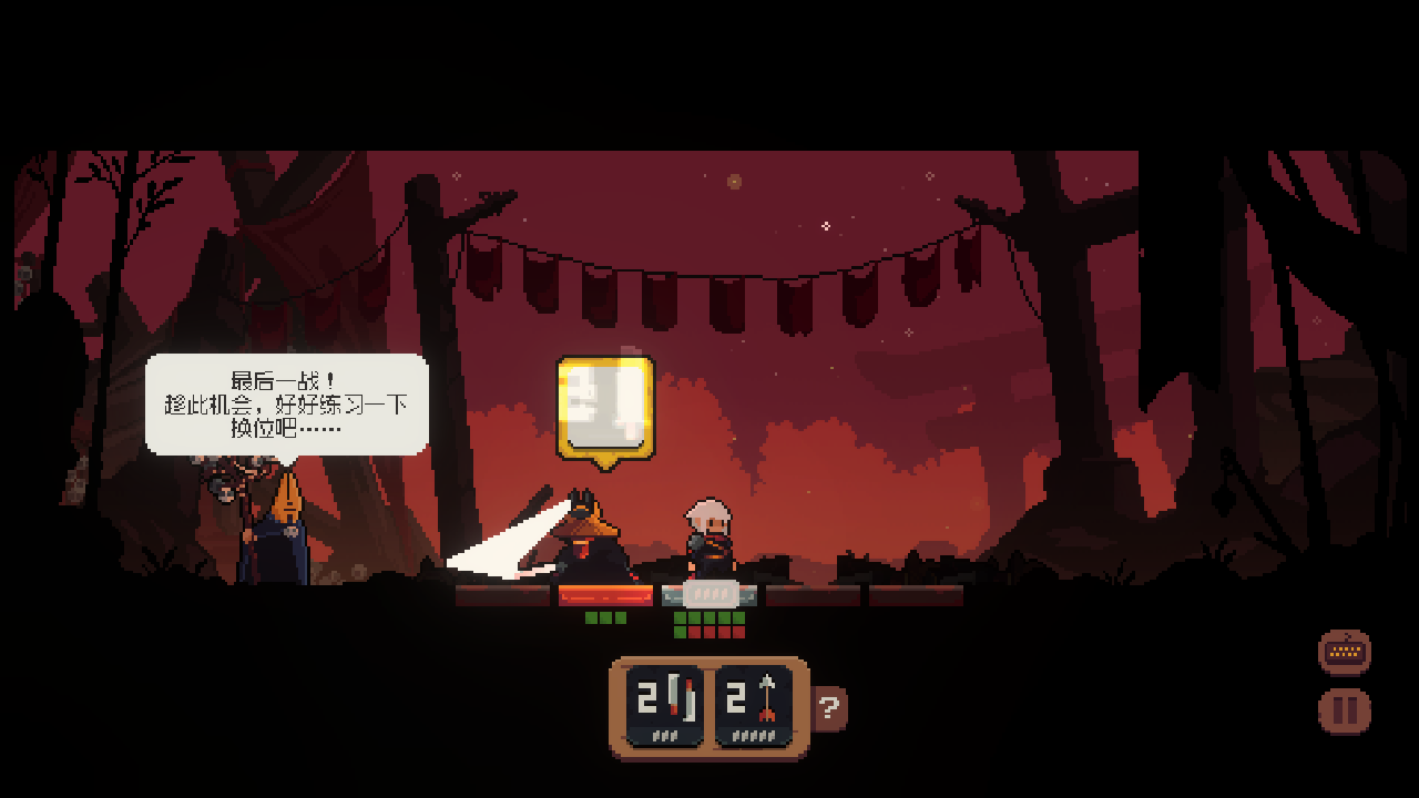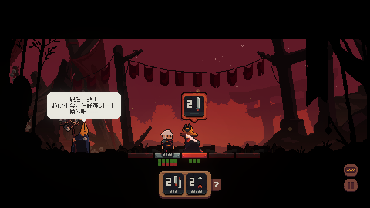 9、游戏种还有一个特殊行为,当敌人已经放置卡牌,而玩家只能挨打时,可以选择向敌方方向直接前进。