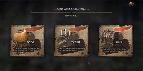 3、一开始会获得三件圣物,随机选一个就好。