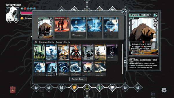 游戏中的卡牌属性除了传统的攻击,防御和恢复外,也额外加了如魔力,中毒,急速等Buff类属性,让卡牌构筑的深度更加多元化,简单来说就是没那么容易腻。