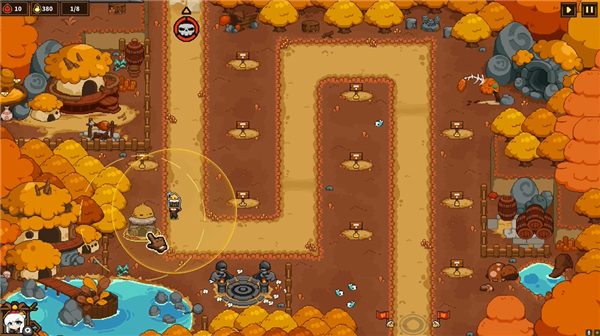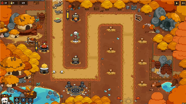 4、不同的防御塔是拥有麦叽族战士,可以看见有的是在防御塔攻击,有的是麦叽族战士在道路中等待敌人。