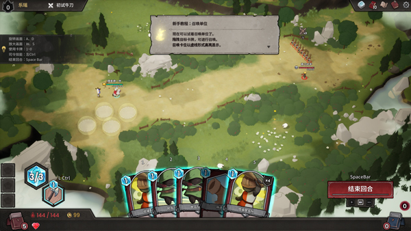 6、进入游戏后,新手玩家需跟随引导,使用下方卡牌排兵布阵进行攻击和防御;