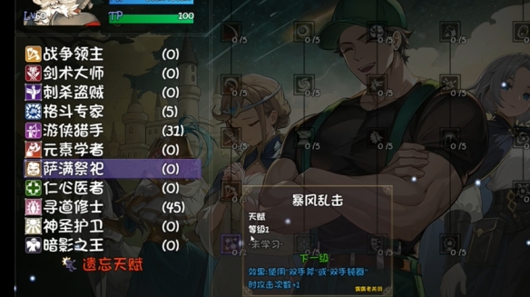 天赋「暴风乱击」:使用双手斧和双手钝器时,攻击次数+1。