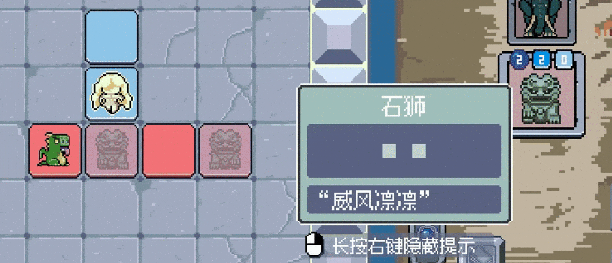 9、石狮卡牌,上面的数字表示它有2个魔物砖块和0个奥法砖块。