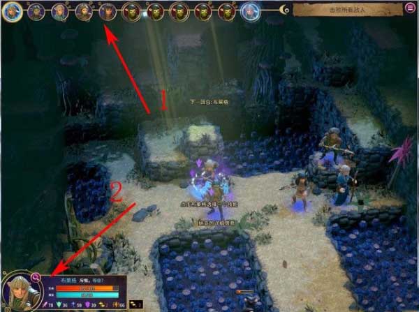 如下图箭头1所指,这里是回合列表,列表会从右往左滚动,越左边的角色越先发动进攻。