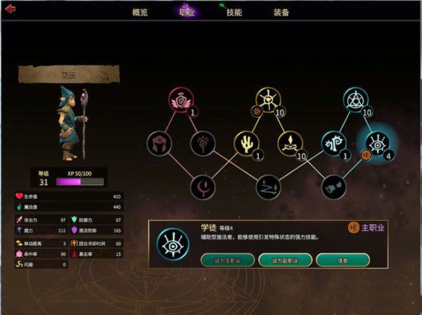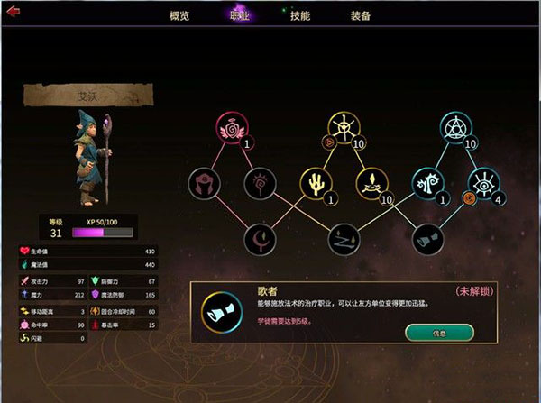 通常,职业树分为三个系列,战士,斥候和法师,如果要解锁二级职业,就得将一级职业升级到十级,