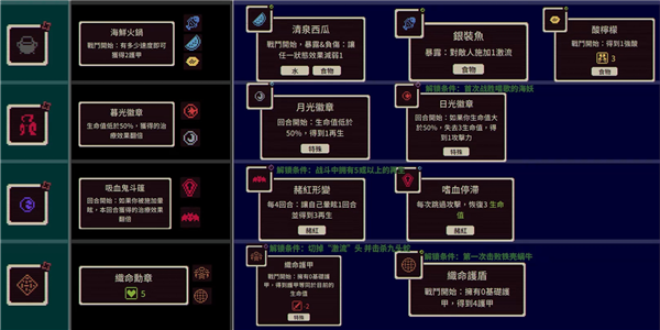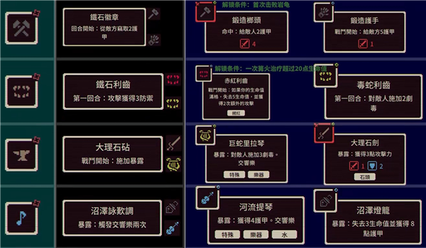 3、道具各有特色,黄羽毛加速伤口愈合,龙鳞甲反弹伤害。