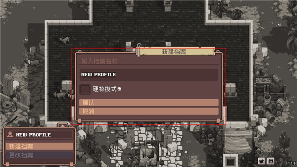 2、进入游戏后需要先创建档案,这里默认即可,想要挑战高难度的玩家也可以勾选硬核模式;