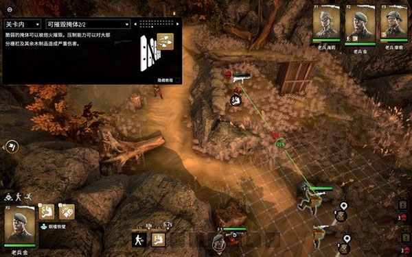 除此之外,急救技能可以治疗士兵,手雷能攻击掩体后面的敌人造成范围伤害。