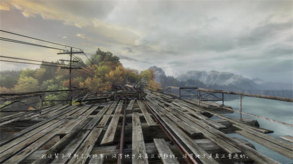 伊森卡特的消失是由The Astronauts进行只知道一款恐怖冒险类游戏。本作由20世纪早期的死亡童话和科幻小说进行改编,伊森卡特的消失采用了虚幻3引擎进行打造,在游戏处理上做的非常不错,有着写实的游戏画面,建模做的很好,让游戏充满了变数,自由度非常高,你能够随意的收集数据进行破案,在伊森卡特的消失当中玩家将扮演一位拥有可视化境界眼超能力的侦探,可以提前预览犯罪场面。主线任务是拯救一个被绑架的小男孩,他们要前往一座山林,会遇到众多可怕的场景,主角将利用超能力与现代侦探工具,探寻隐藏其中的秘密,还有统治这片区域的远古力量。如果喜欢可以下载!! 探索美丽而凶险的红溪河谷: 革命性的摄影测量技术使得游戏画面异常的逼真。 为了搜集线索你需要和死人对话,从中找出事件的真相。 自由开放、非线性的游戏方式。 玩家无需过分担心,游戏虽然带有恐怖元素,但给人更多的感觉是湿冷和不安。 前进 - W 后退 - S 左转 - A 右转 - D 奔跑 - W同时按住左shif 下蹲 - 按左Ctrl键切换模式 放大 - 鼠标右键 互动 - 鼠标左键 选择前一个选项 - Q 选择后一个选项 - E 打开视野 - 空格 森林陷阱谜题: 游戏开始,出隧道后先别着急往前走,在铁轨左边找到两个陷阱,在铁轨右边找到三个陷阱,找齐并观察后,来到树下,阅读树下的笔记。 铁轨命案(Travis 之死): 沿着铁轨往前走,过桥,来到火车头旁。 观察火车头,观察右边的死人,观察铁轨上的绳子,观察铁轨旁的油桶和铁轨内的枯草,向前走,观察铁轨左侧的石头堆。 在火车头右手旁不远的湖边找到曲柄。火车头后面不远处的铁轨旁找到小石头。把小石头放回原来的石头堆里,用曲柄发动火车头,将其后退至油桶处,最后触摸死人,还原整个事件。 1. Ethan 被绑铁轨 2. Edwin 捡起石头 3. Edwin 在火车头旁警告 Travis 4. Travis 铁轨断腿 5. Travis 企图爬走 6. Travis 没爬多远被 Edwin 砸死 太空旅行谜题: 从湖边绕过被山崩堵住的铁轨,沿着铁轨继续往前走。在铁轨左侧的树林里可以找到一个信号灯。 按正确的顺序按下信号灯(按错会闪红灯并重置),出现一个太空人,跟随太空人,一直到太空舱出现。进入太空舱,升空进入宇宙后,在背后的凳子上找到笔记并阅读。 灵异房屋谜题: 沿铁轨继续向前,走过车站,再向右走过大坝,这时左手是灵异房屋,正对桥头的则是 Ethan 的家。此时灵异房屋背后的升降机还无法使用,不用管。 (在准备解开灵异房屋的谜题之前,最好先去 Ethan 家把房间布局都记清楚了再开始。) 进入灵异房屋后先阅读笔记,然后蓝光出现。根据 Ethan 家的房间布局还原整个房子。每还原对一个房间会全屏闪一下蓝光,还原错误会全屏闪红光。错误两次后就得重头开始了。全部完成后出现秘密房间,进入后阅读笔记。 魔女森林谜题: 面朝 Ethan 家,道路在这里分岔,右手是一条沿着湖边的路,面前另一条路则是通往后山。这里先沿着这条路上山,途中会经过一个森林。 剧情过后来到森林中的帐篷前,找到笔记并阅读。 墓地命案(Chad 之死): 继续沿路向前走,来到山上的墓地。 观察地下墓室内的机关和扳手。面对地下墓室入口,观察左手边的屠宰台,背后的油壶,右侧外墙上的血迹,右手边的手推车,右边略远处石棺附近地上的血迹。 来到石像处,面对石像正面,在右手不远处的石棺旁捡到乌鸦。进入教堂,在右手尽头的台阶下捡到油灯,把油灯放回油壶处。进入地下墓室,把乌鸦放入机关,拉下扳手点火。从死人身上得到匕首,放回门外的屠宰台。最后触摸死人,还原整个事件。 1. Dale 和 Missy 对话 2. 三人在地下墓室门口,Chad 准备砌砖封墓 3. Chad 受伤捂脸,Missy 拿灯查看 4. Chad 和 Dale 打斗,Missy 拿匕首对准 Chad 5. Missy 和 Travis 举着灯对话 矿井命案(Missy 之死): 从墓地后面沿着路继续走,来到锁着的矿井大门前。面对矿井大门,沿着右手的路再走一点,在右边找到矿井的隐藏入口。进入后向深处走。先进入电梯,再按动按钮向下,到达下层,继续走,直到铁轨出现。 按下按钮升起水里的电梯,检查里面的死人,面对电梯,检查右手的铁镐架。登上左手边不远处的火车,启动火车,向前撞碎石块,火车绕了一圈后继续前进。在车头灯的照射下发现铁镐,捡起铁镐将其放回铁镐架上。最后触摸死人,还原整个事件。 1. Dale 和 Missy 来到矿井 2. Missy 进入电梯 3. Dale 按下按钮 4. Dale 拿起铁镐 5. Dale 拿着铁镐向按钮走去 地下祭坛谜题: 坐火车向前,在途中左手边遇到的第一个岔路口下车,走进去后是不断向下的旋转阶梯,来到底是一个迷宫。 在迷宫内找到五个死人(其中一人就在祭坛脚下)。找的时候注意躲开提灯的僵尸,正面遇到的话必死。找齐后登上祭坛,参照五个魂魄脚下所踩的图案转动神秘符号(注意每一圈都有不同的图形以示区别,如正三角、倒三角、圆形、菱形、六角形)。其中缺失的最后一个符号在祭坛脚下的笔记上。成功拼对后找到右手边的笔记并阅读。 房内命案(Dale 之死): 坐火车继续向前,直到火车开不动为止。下火车进入左边,趟过地下温泉,走出矿井。因为左手边的水电站上了锁,所以先去右手边的房子。 检查门口的消防斧箱子,上二楼检查破损的门,检查桌上的笔筒,检查死人,捡起消防斧,将其放回门口的箱子内。站在门口,面对门外,出门去左手边的升降机处,捡起剪刀,将其放回桌上笔筒处。最后触摸死人,还原整个事件。 1. Dale 拿