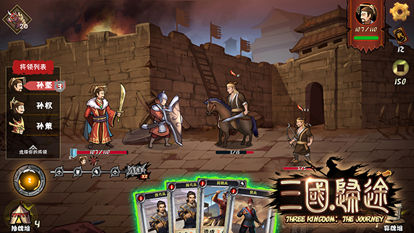 核心牌:孙坚(2点连击值)、雇佣骑兵、雇佣步兵、雇佣弓箭手