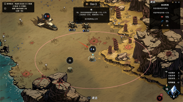 绝望之地游戏中,玩家的首要任务是采集稀缺资源,奋力修复受损的星舰,同时击退一波波汹涌袭来的异星怪兽威胁,过程中你可以选择多样化的防御塔——从基础炮塔到激光塔、导弹发射器,每种塔都拥有独特的攻击范围和伤害类型,因此你必须精准预判来袭敌人的特性,策略性地部署并升级你的防御阵列。唯有合理利用这些防御设施,有效消灭敌人,你才有可能在这片充满绝望的星球上杀出一条生路,最终实现逃离的终极目标!