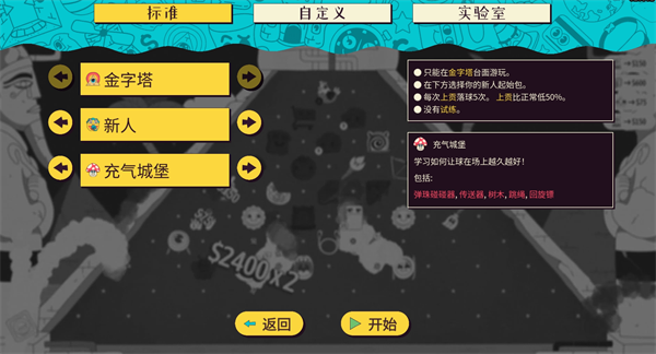 沙盒玩法:在弹球实验室里进行各种尝试——测试新的必胜思路?画图玩梗?或是单纯建造难以获得的滥强连锁?和好友们分享你设计的弹珠台,看看谁能在台上赚到最多分数吧!