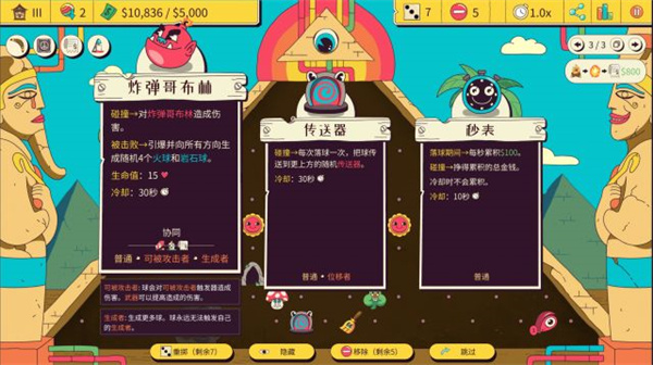 比如你可以给弹珠挂上武器组件,这样它对于需要击败的“敌人”可以造成个多的伤害(血量打空能产生各种增益效果)给弹珠挂上气球组件,它在触碰到底部之后会完成“触底反弹”飘起来。