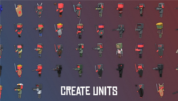 1、从不同的游戏模式中选择,比如死亡竞赛、征服、占领、僵尸模式等等2、在定制的战斗编辑器中进行各种活动或是创建自己的游戏场景3、选择游戏规则、改变环境、放置单位、物体或陷阱,并确定自己的装备4、对石器时代、中世纪、一战、二战等各种时代的内容进行探索,与现代和未来的武器进行比较5、玩家们甚至可以再现一些历史上的战争6、玩家可以使用非常先进和混合的装备,能够进行非常酷炫的战斗7、多元化的游戏元素,丰富性的游戏内容,多种类型的武器装备