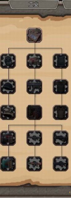 2、工业工业科技的优先级为次等,点亮了科学中的兵营之后,就可以来点工业科技了。这里主要可以生产武器弹药和护甲,游戏中,安全永远是是第一,有了士兵还不够,得保证弹药的充足、武器护甲足够好用才能在掠夺者和僵尸的袭击中生存下去。游戏前期,工业科技树点亮了中间线的第一项能生产弹药就行,其他的暂时不管。