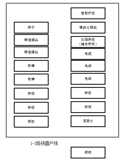 3-4级钢铁产线:钢铁产线可以放在铁器产线的上层或者下层,通过传送带连接。会用到1-2级的材料。