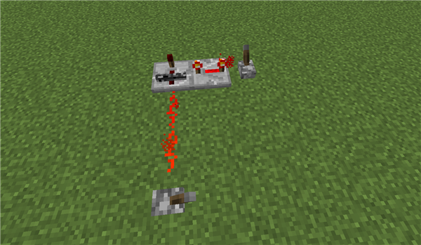 同样的,图中被锁定的红石中继器也没有因为信号输入终端而终止红石信号的提供。