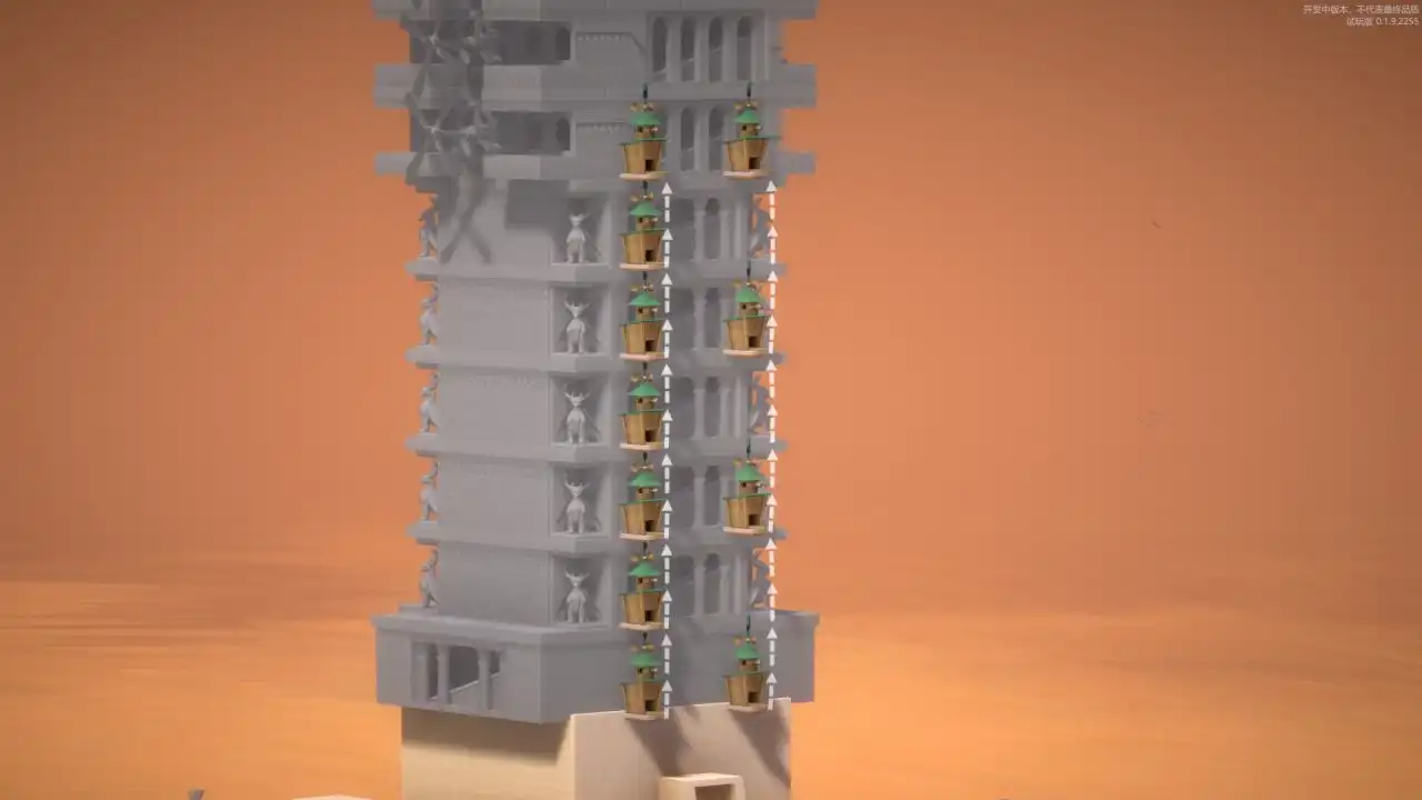 巴别塔垂直国度(STARIO Haven Tower)是一款垂直城市建设模拟游戏,背景设定在文明被末日沙尘暴摧毁后的世界,玩家将作为“塔主”,需要带领幸存者从沙漠中的基座开始,向上建造一座通天巨塔,穿越风沙、迷雾、雨水、冰雪等六个生态迥异的大气层,目标是抵达星空尽头,完成重振文明的故事主线。玩法上,巴别塔垂直国度主要围绕垂直空间规划与资源管理展开,玩家不仅需要建设居民住房、农场和加工设施来满足塔民需求,还必须通过研究科技解锁管道、热气球等纵向物流系统,高效调配各楼层资源以应对“高层缺建材、底层断粮”的挑战!而在此过程中,玩家还要动态防御沙暴、暴雪等天灾,后期还能通过仪式平台主动操控环境或强化塔民能力。