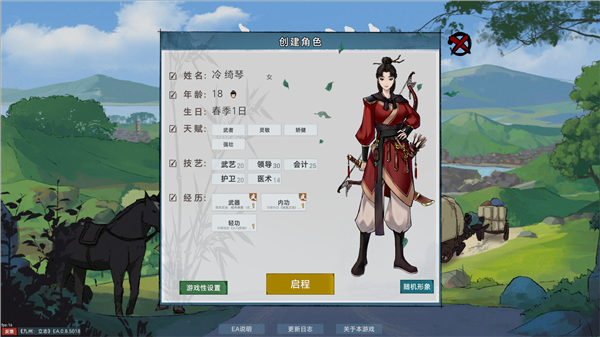 6、最后进行形象设置,完成之后点击启程就可以开始闯荡九州。