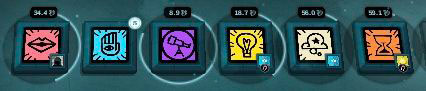 时间流逝(橙色方块)每60秒都会消耗掉一个金钱。吸铁石标志代表着自动获取,也就是不由玩家控制。当吸不到金钱的时候,时间流逝会将健康转化成饥饿,如果没有健康可以转化,主角就会饿死,游戏结束。饥饿可以用金钱还原成健康,但如果一直没被还原,饥饿就会转化为衰老。衰老只能通过仪式还原。