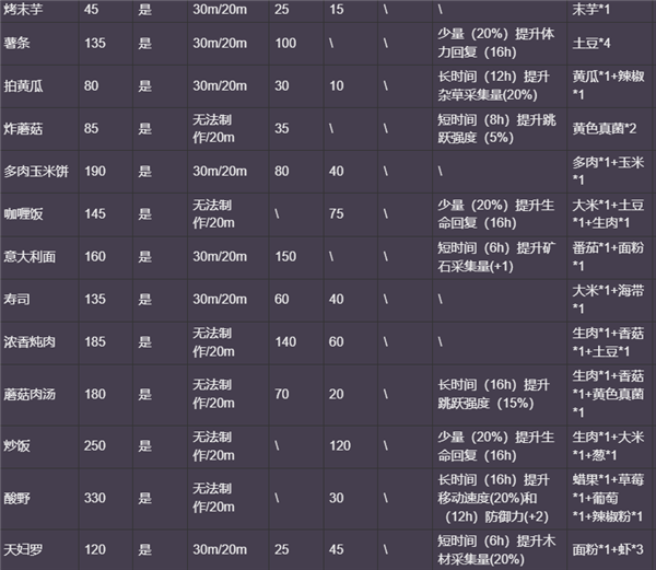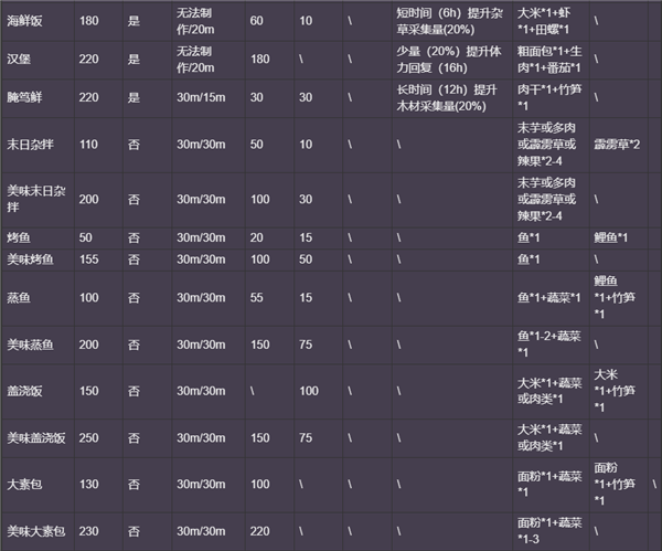 烹饪:在末世中需要学会使用仅有的物资烹饪食物,看看什么样的组合能搭配出末日佳肴。有些美食高手甚至能悠哉的饮茶、泡咖啡和酿酒。