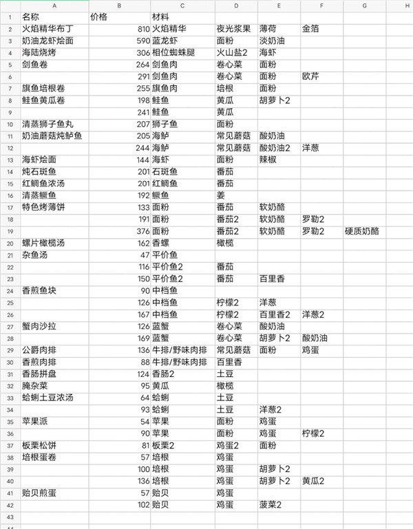 龙之歌美食与冒险游戏菜谱介绍