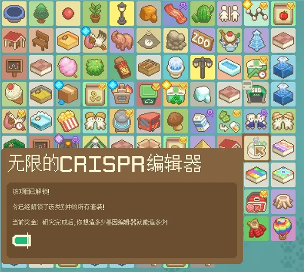 另一个间接的改进来自“产业”分类中深蓝底的研究,解锁5个后可以增加CRISPR编辑器的房间(2变4),具体是哪几个可见第3条。