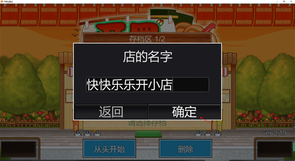 5、游戏的开始就是先给自己的拉面店取一个好听的名字,取好之后就点击确定。