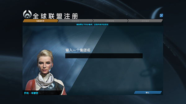 5、点击开始,首先进入需要输入一个集团名称,即为游戏角色名