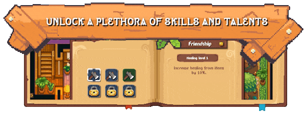 1、在《像素郡物語》中发展超越同伴关系的友谊。这些朋友可成为你的好搭档,陪伴你踏上冒险之旅,协助你收集资源和完成任务,这一切都归功于“跟随”功能,它使你的像素郡之旅更加好玩,更加身临其境。