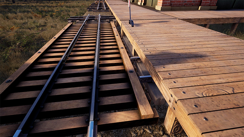 转辙机一侧的枕木和木桩的光面对齐。这样轨道就与站台平行或垂直了。游戏灵敏度太高,这一步需要极大耐心。