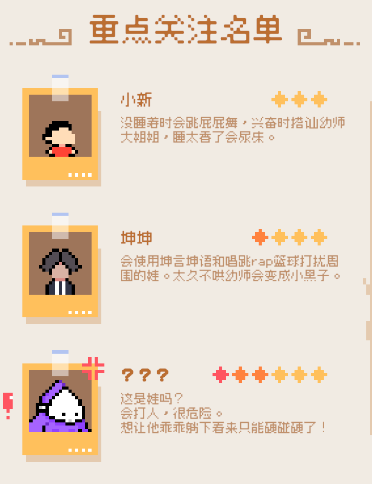 午休时间到电脑版是由b站up主火山哥哥自制的一款模拟扮演类游戏,游戏采用复古像素画风,搭配上亮眼的色彩,打造了一个可爱温馨的幼儿园小世界,玩家在这里将扮演一名幼师,任务就是安抚所有孩子睡午觉,在这个过程中玩家会遇到各种各样的问题,游戏内拥有8个关卡内容可以挑战,难度会随着关卡而提升,想要挑战的朋友快来下载吧!
