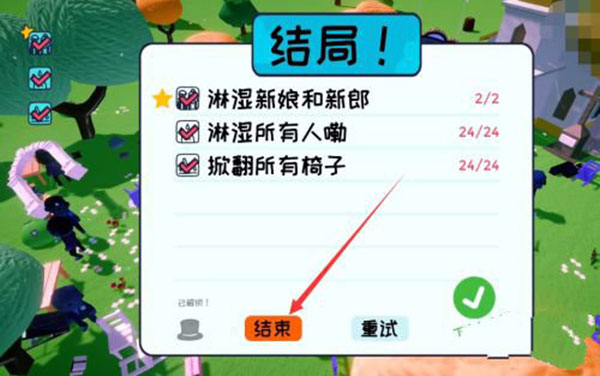 5、当我们完成关卡目标后点击“结束”就可以继续玩下一关啦。