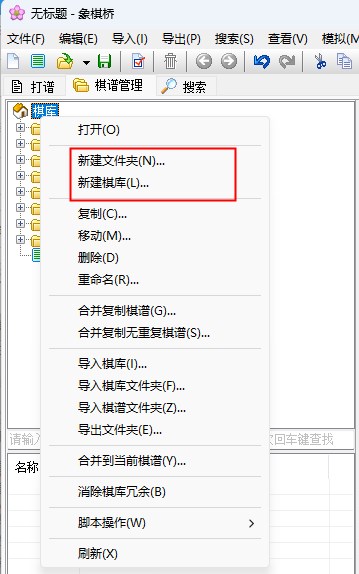 2、选中棋库,点鼠标右键,选择建立棋库