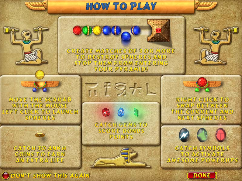 1、创建3个或更多的匹配来摧毁球体,阻止它们进入您的金字塔!