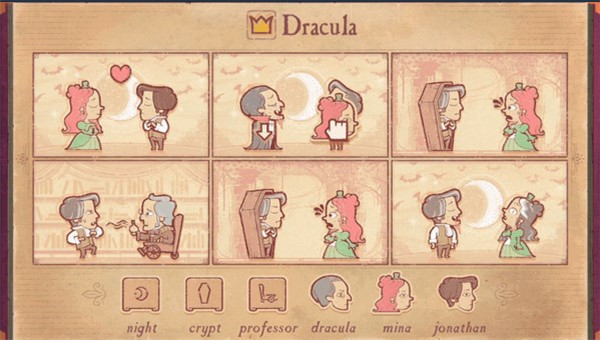 它的漫画格子设计和可爱的动画效果让你能够在众多故事框架内进行尝试:只需拖放调整游戏元素的位置即可看到故事如何展开!