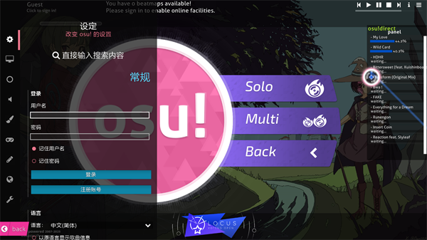 osu电脑版怎么设置中文语言