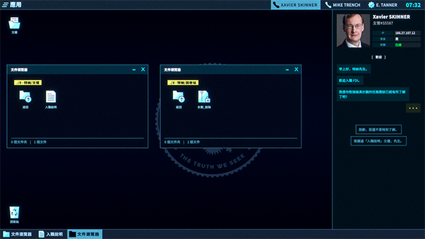 1、为外勤特工提供支持:当外勤特工需要协助时,会及时呼叫你。请帮助他们完成包括确认线索、搜寻数据库,指认凶手等在内的各项后勤工作。每个案件都会提供需要你分析评估的证据,而你的职责则是调查卷宗,串联线索并最终破解案件中的疑团。